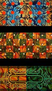 | Rae Mahaffey "Acanthus" 2001 "Chekered Past" 2001 "Citrus Sides" 2001 oil on canvas 6" X 12" each |