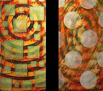 | Rae Mahaffey "Squares on Target" 2000 "Word Games" 2000 oil on canvas 12" X 6" each |