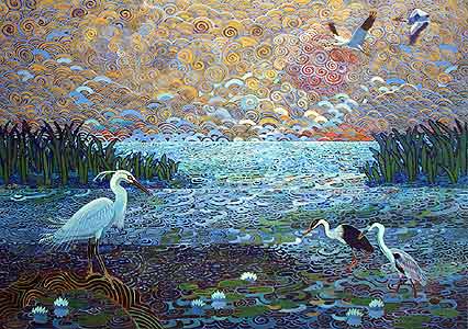 | Alfredo Arreguin "Las Garzas" oil on canvas 2001 42" x 60" |