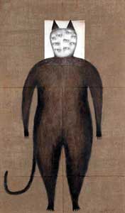 | Deborah Barrett "Cat with Nine Eyes" Pencil, Parchment on Linen 2001 24.5" x 17.5" |
