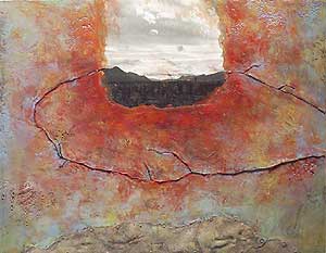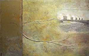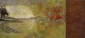 | Margaretha Bootsma "The Longing Place" 1999 c-prnts, b/w prints, wax on panel 25.5" X 57" |