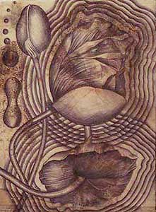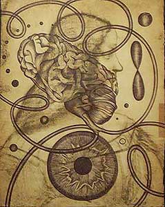 Joy Broom "Leonardo I" Ink, Mixed Media, Paper, Beeswax on Board 8.5" x 11" |
