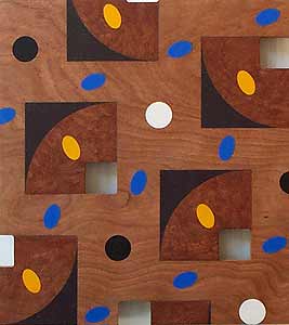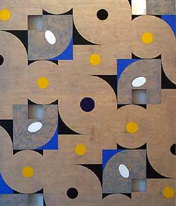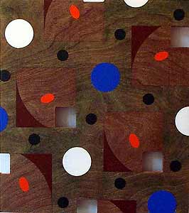 | Jack Chevalier "Talking Drum" 2000 oil on maple veneer 35" X 30" |