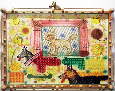 | Roy DeForest "Dog Boy" 2001 Pastel, Pencil, Acrylic,Paper, Wood 37" x 45.5" X 4.5" |
