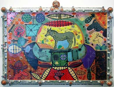 | Roy DeForest "Filly Fields" 2001 Acrylic,Paper, on Panel 39" x 49.5" X 4" |