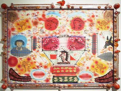 | Roy DeForest "True Love" 2001 Pastel, Pencil, Acrylic,Paper, Wood 36" x 46" X 4.5" |