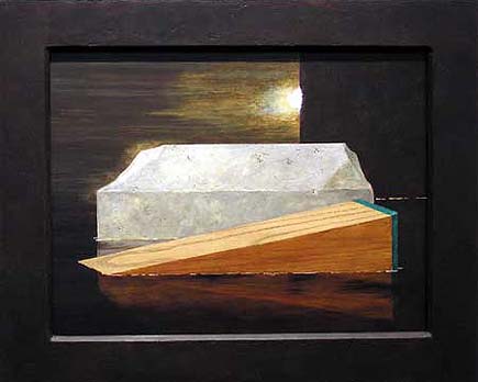 Robert Helm Splitting Moon 1987 Oil on Panel, Wood Inlay, Glass 39" x 60" x 2.5" Price available on request. SOLD |