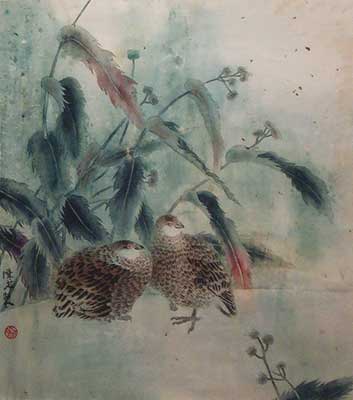 Chen Lin "Relying on Each Other" 2001 Chinese Paint, Ink on Rice Paper 15.5" x 14" $900 |