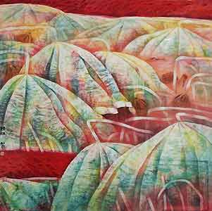 | Chen Lin "Maturity" ink, Chinese paint on rice paper 2001 32" x 32" |
