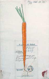 | Kenna Moser "Carrot" 2000 beeswax, vintage text and oil paint on cherry 13.5" X 8.5" |