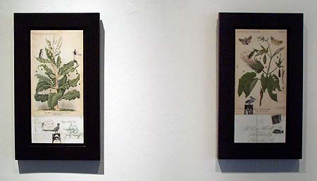 | Kenna Moser "Rumex Canaigre" beeswax, vintage text, paint on oak 1999 12" X 5.5"