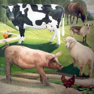 | Roger Jones "Farm Animals" 2000 oil on canvas 24" X 48" |