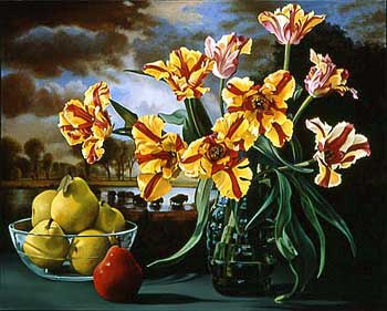 Sherrie Wolf "Tulips, Grapes and Apricots, after Bierstadt' 2003 Oil on Canvas 48" x 60" |