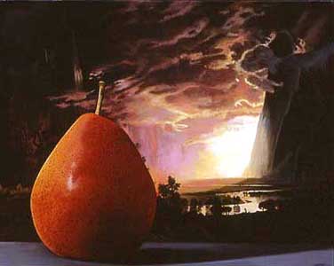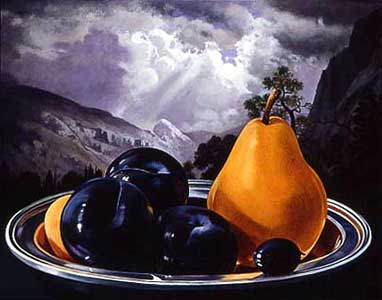 Sherrie Wolf "Pear and Plums at Yosemite, after Bierstadt" 2003 Oil on Canvas 22" x 28" |